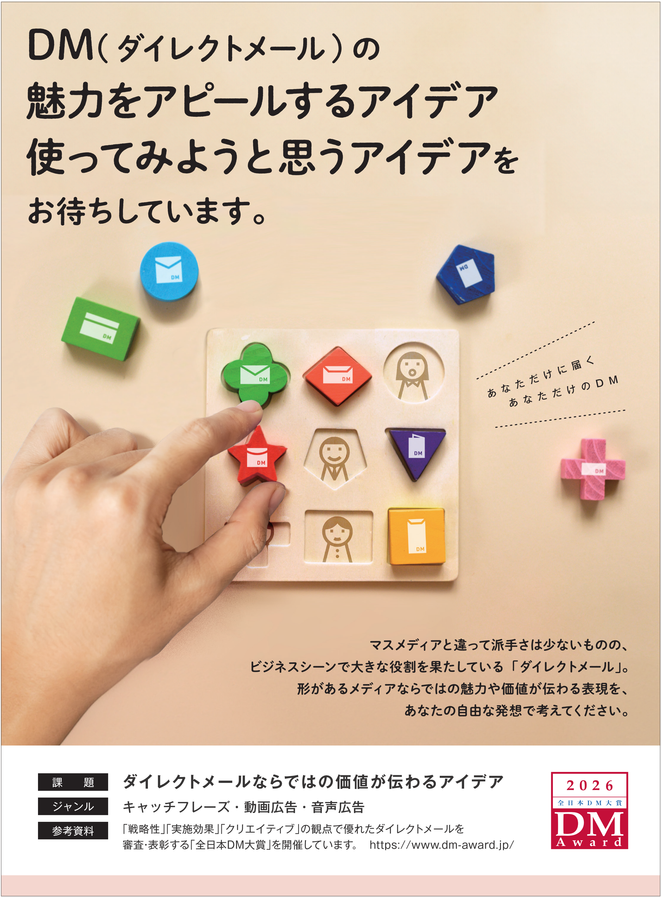 マーケティングや営業活動に携わる方々に向けて、ダイレクトメール(以下、DM)の魅力・価値が伝わるアイデアを募集します。